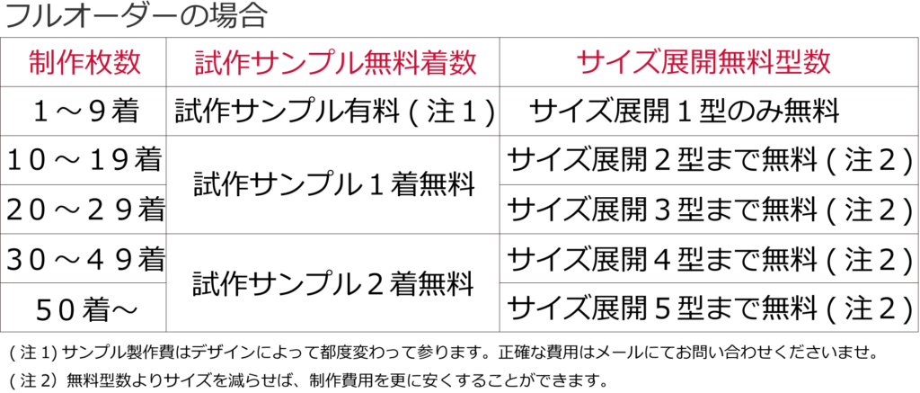 この試作サンプルですが、10着以上ご依頼いただいた場合は無料とさせていただいております。