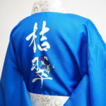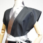 セミオーダーの着物半天両用タイプをベースにして、袖を取り払い太鼓用の衣装にしております。