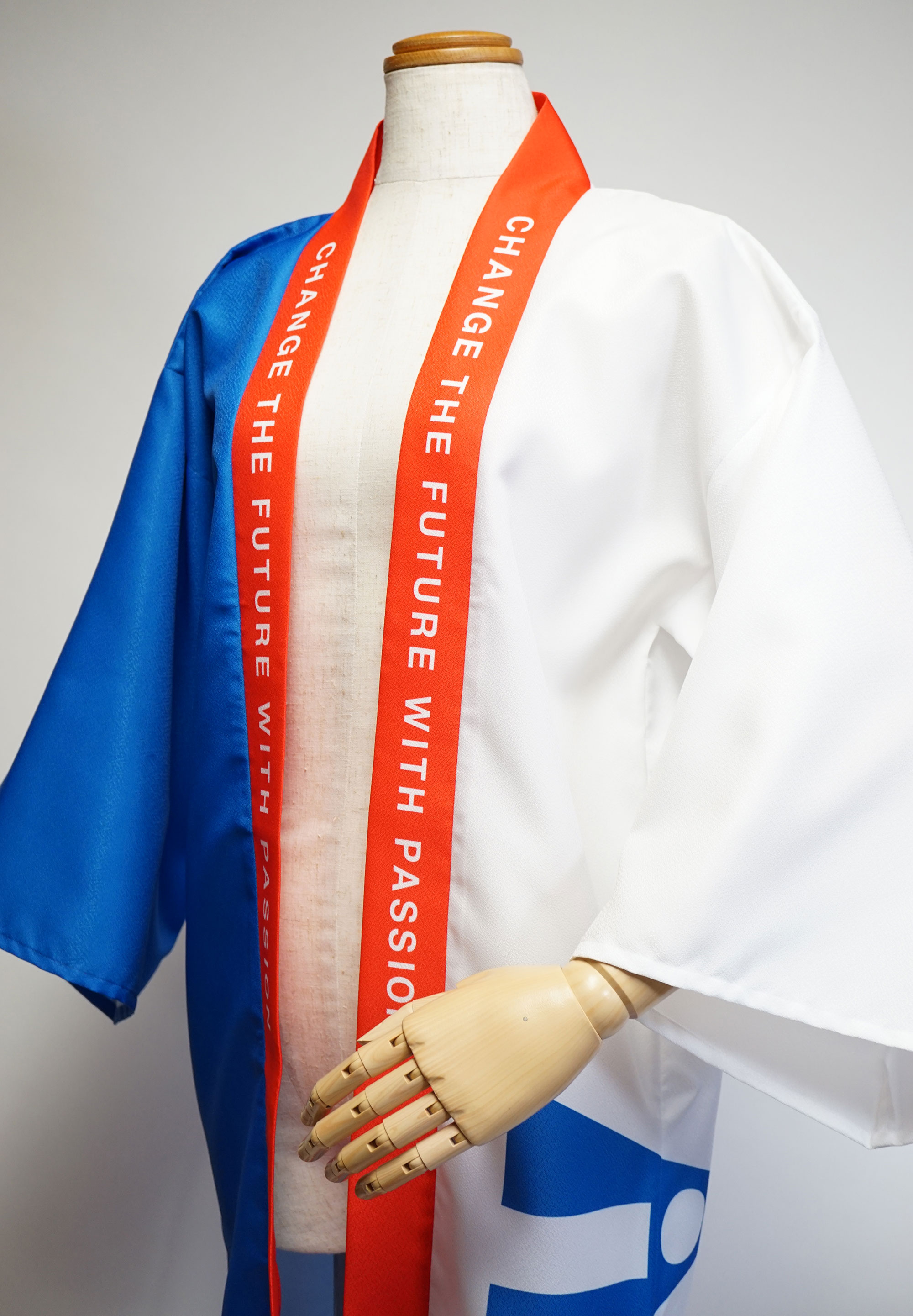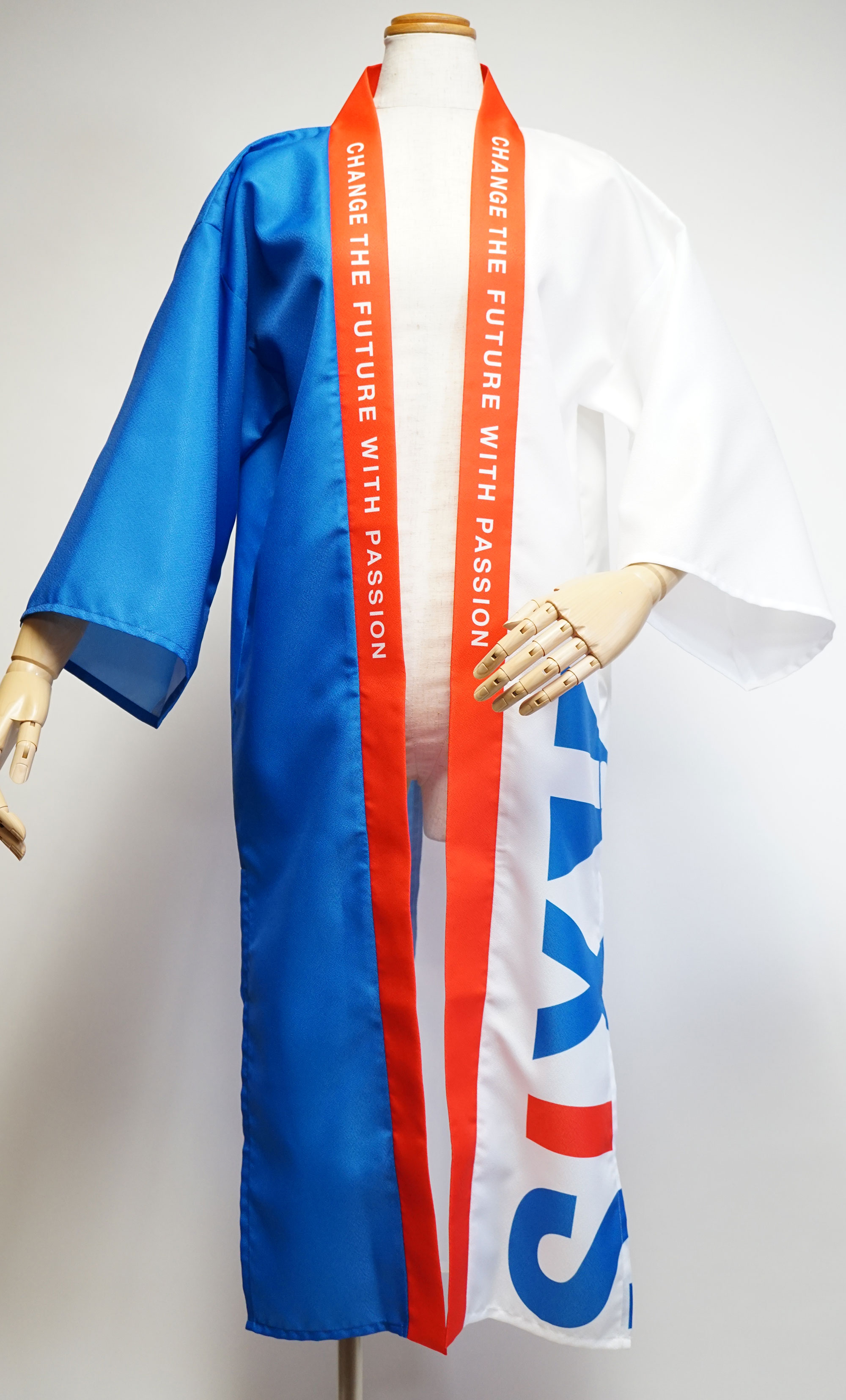 アクシスITパートナーズ株式会社様2025 セミオーダー半天ロング丈七分袖をベースにして制作しております。 データでご入稿頂けましたら会社のロゴやキャッチフレーズを用いた衣装がデータ作成費を抑えて制作できます。 データがない場合は、トレースしてデータ作成も行わせていただきますので、お気軽にお申し付け下さい。 セミオーダー ~半天 ロング丈七分袖~