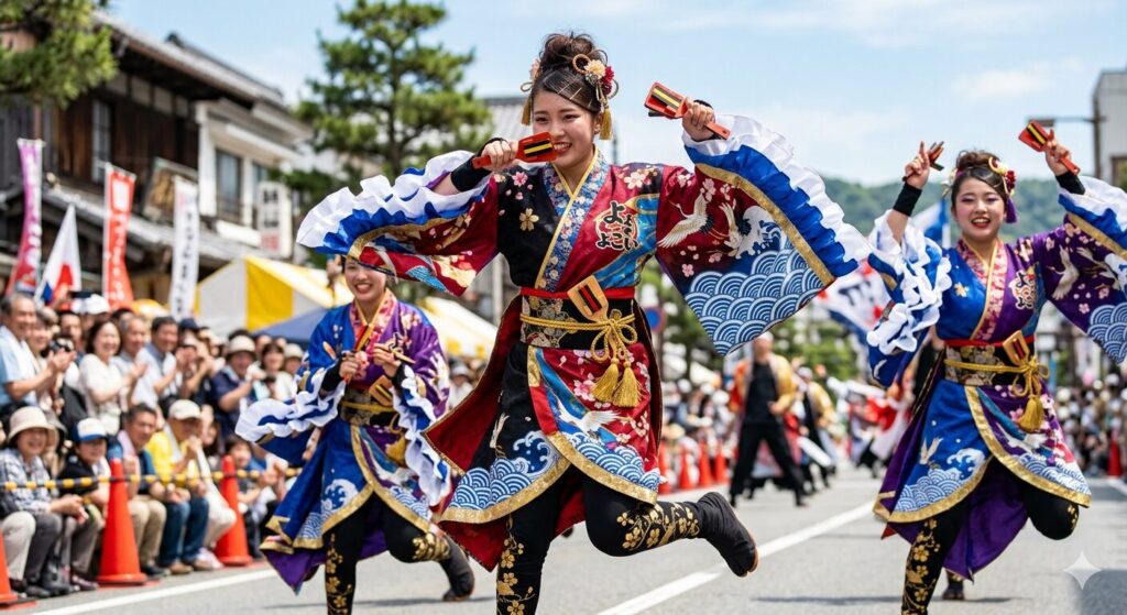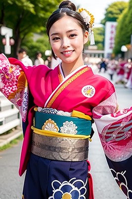 AI側からすると、プロンプトがおおまかすぎてこちらが何の画像を必要としているのかがわからない状態なので、「ひとまずよさこい祭りの風景画像を生成してみました。」といった感じです。